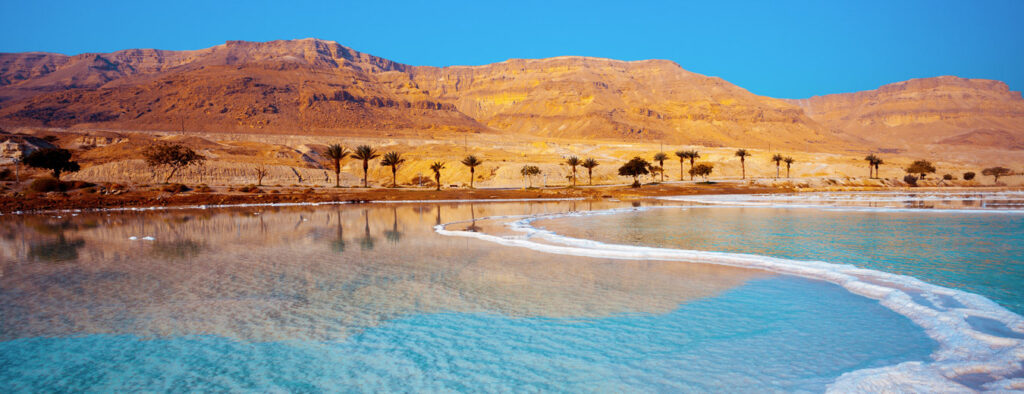 O Mar Morto, famoso pela alta salinidade que permite flutuar sem esforço, vem encolhendo rapidamente nas últimas décadas. O desvio de rios que o alimentam e a exploração mineral têm acelerado esse processo.