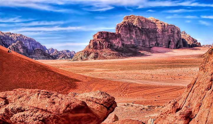 Conhecido como o “Vale da Lua”, o Wadi Rum é um dos desertos mais cinematográficos do mundo. Seu cenário de rochas avermelhadas já serviu de locação para filmes como Lawrence da Arábia e Perdido em Marte.